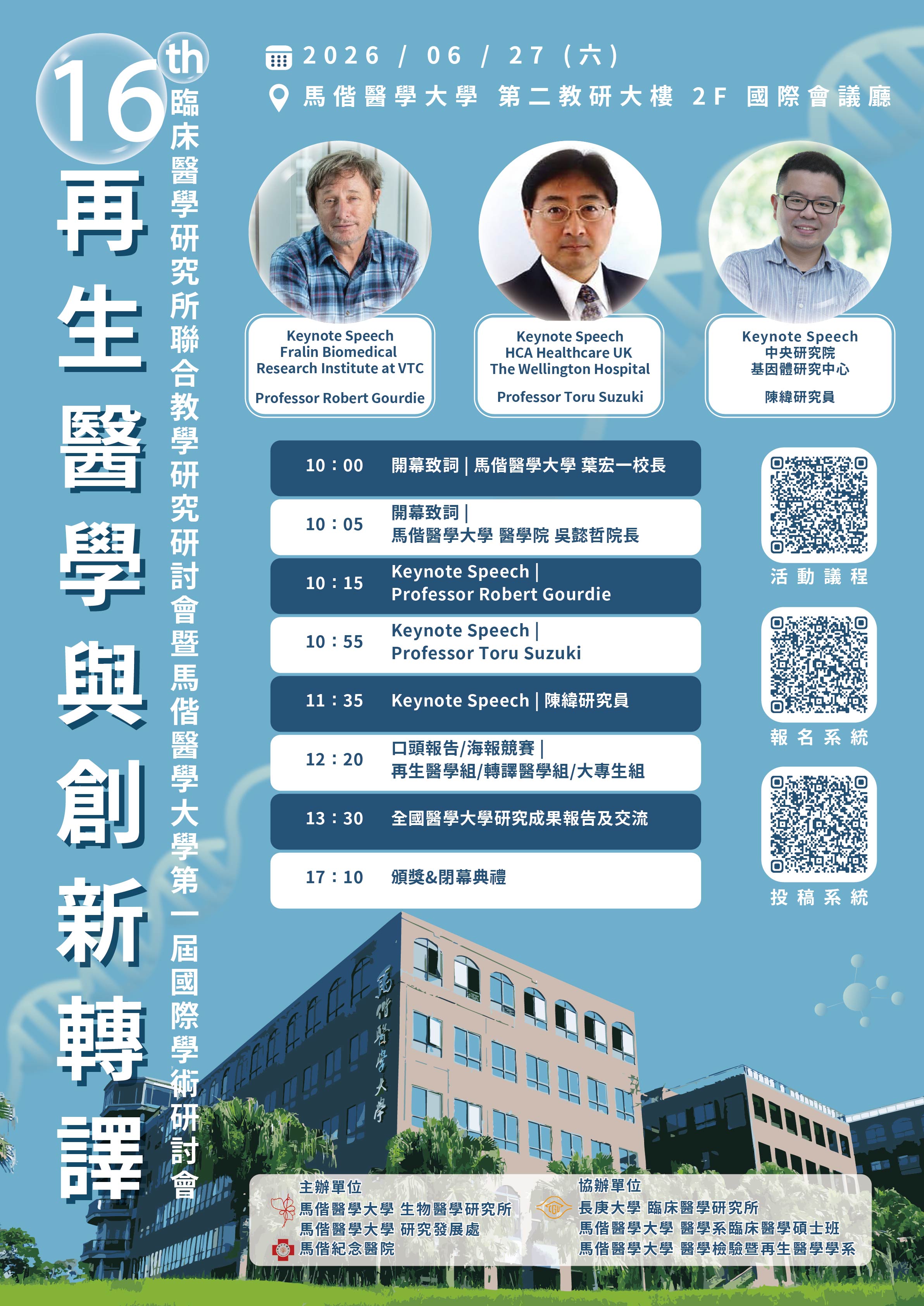 演講與活動 [2026-03-10]【職涯講座預告-同步視訊】1150316碁元會計師事務所 劉福運所長 [2026-01-22]【活動回顧】生醫所114年度生醫所生涯講座-敬邀食品藥物管理署藥品組林意筑副組長 [2025-12-22][活動回顧] 邀請 「臺北醫學大學生物醫學工程學系 彭志維教授」 [2025-12-22][活動回顧] 邀請 「請中央大學生醫科學與工程學系__羅孟宗教授兼系主任」 More